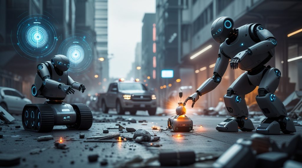 Unlike traditional EOD robots limited to simple terrains, the latest AI-powered systems demonstrate remarkable mobility. Today’s most advanced robots employ hybrid mobility systems, combining tracked, wheeled, and even legged locomotion to navigate stairs, rubble, and other challenging obstacles .